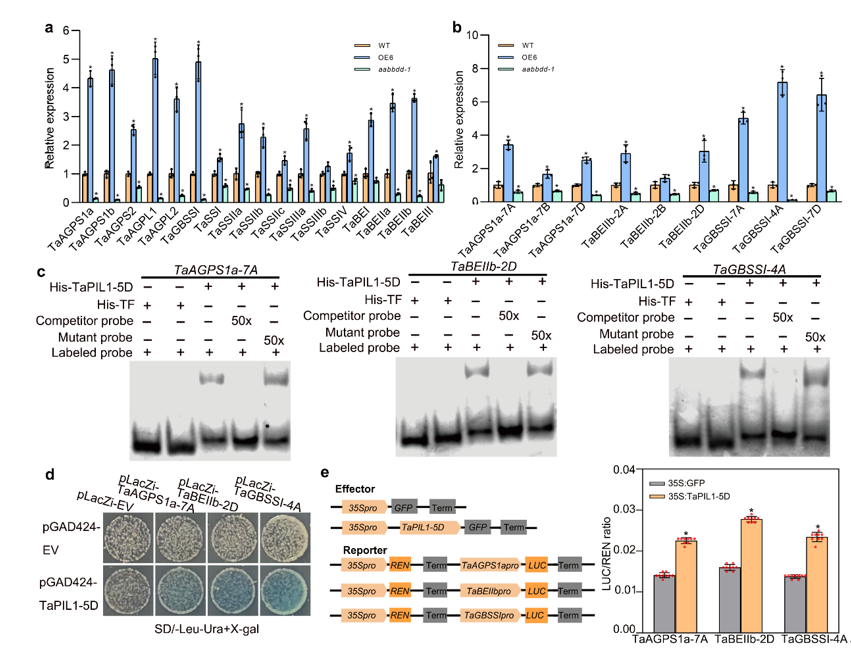 TaGBSSI-4A表达,调控了小麦籽粒淀粉的合成;TaPIL1-5B与-5D形成二聚体,增强后者转录激活能力;
