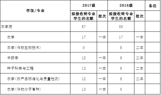 转专业接收专业和名额分配