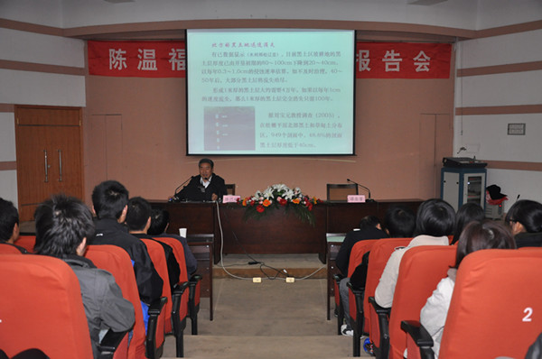 邀请,中国工程院院士、沈阳农业大学水稻研究所所长,国家重点学科“作物栽培学与耕作学”学科带头人陈温福院士在大礼堂300人报告厅,为广大师生做了题为“生物质炭与粮食安全”专题报告。报告会由副校长谭金芳教授主持,我校近300余名老师、研究生参加了报告会。