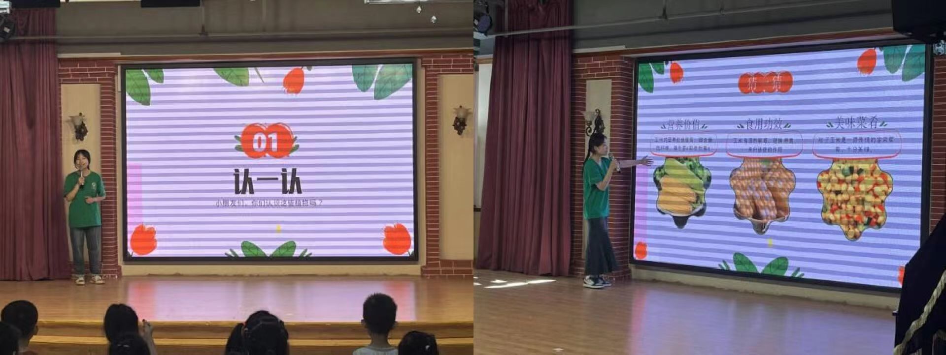 徐睿远和赵瑞在为小朋友们讲解农作物