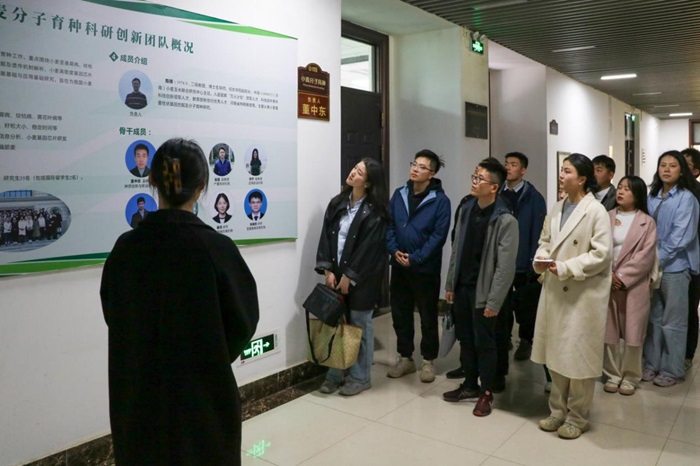 观摩学习“科技赋农”,深入领会“藏粮于技”。随后,禹州市到村任职选调生第一工作小组一行参观了省部共建小麦玉米作物学国家重点实验室,探寻科技强农赋能乡村振兴的重要意义,了解玉米遗传育种等研究的最前沿,强化科学技术是第一生产力的理念,学习用新质生产力推进高质量发展的新思想新理念。